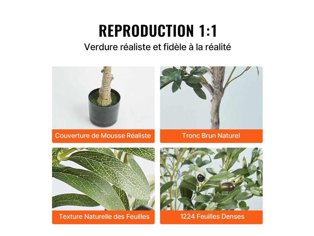 A törzs és a levelek valósághű mintázata, valamint a mohával borított virágföld miatt nehéz megkülönböztetni a fáinkat az igazitól.