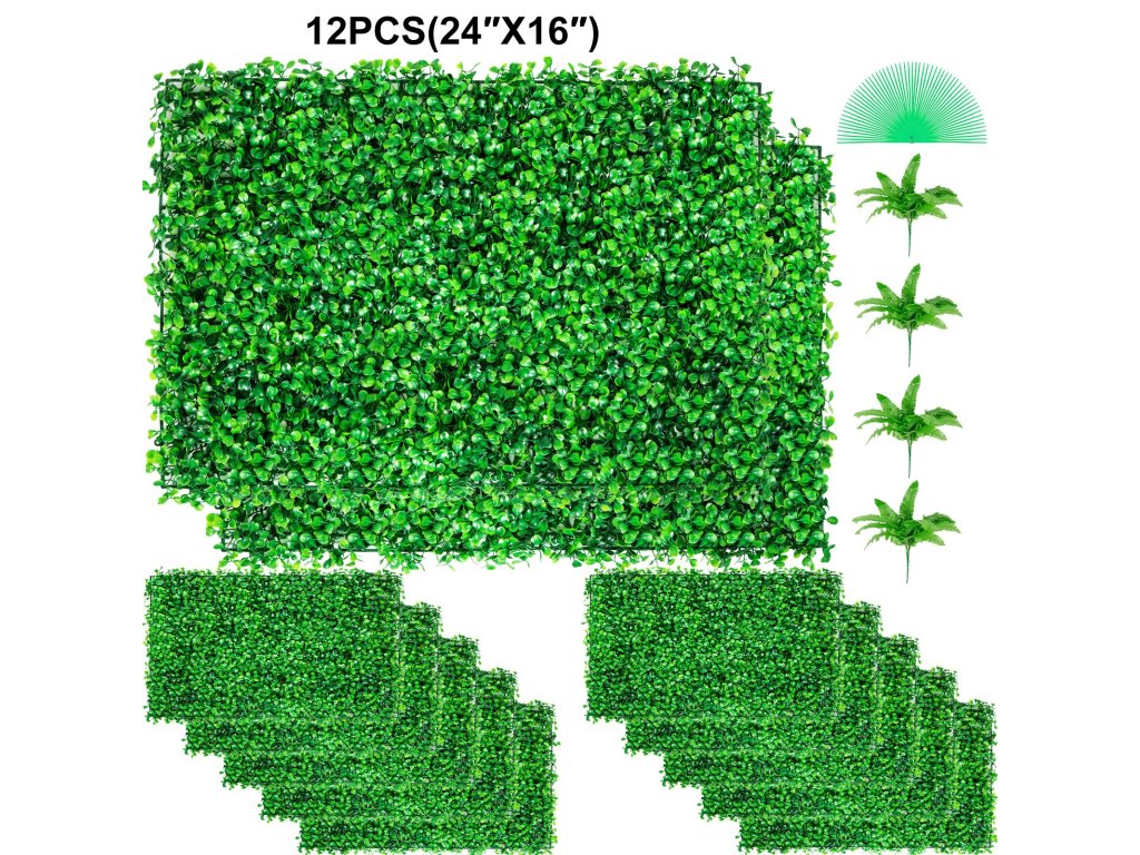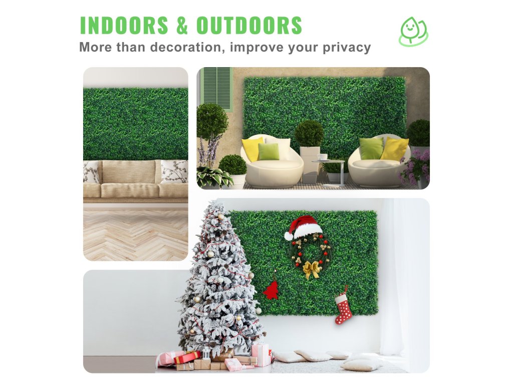 Méret: 24'' x 16''. Mesterséges sövénynövényünk 100% környezetbarát polietilénből készült, amely garantálja a hosszú élettartamot fakulás nélkül.