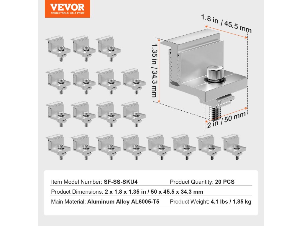 Válassza a VEVOR napelemtartó konzolt a megbízható és stabil rögzítéshez.Az állítható 35-50 mm átmérőjű végkapocs alkalmazkodik a különböző vastagságú napelemekhez, az eloxált alumíniumötvözetből készült szerkezet pedig hosszú élettartamú stabilitást biztosít, így ideális választás a napelemek telepítéséhez.