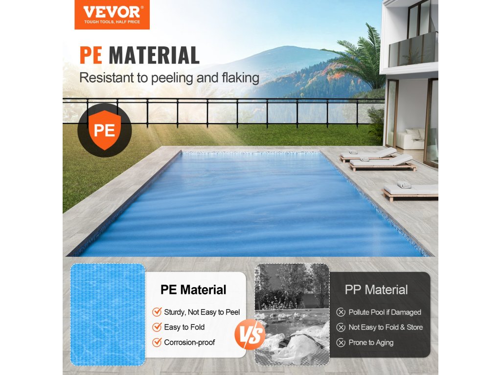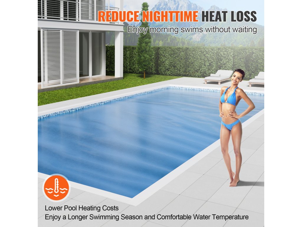A napelemes medencefedél nappal elnyeli a hőt, így növeli a víz hőmérsékletét és csökkenti az éjszakai hőveszteséget. A zárt buborékok megtartják a hőenergiát és kiváló szigetelést biztosítanak. Élvezze a meleg medencét még a hideg éjszakákon is, így bármikor alkalmas a fürdőzésre.