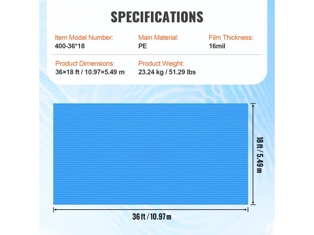 | A termék méretei | 36 × 18 láb/ 10,97 × 5,49 m |