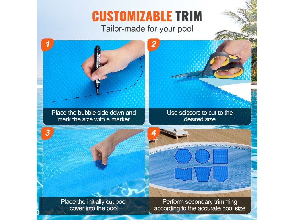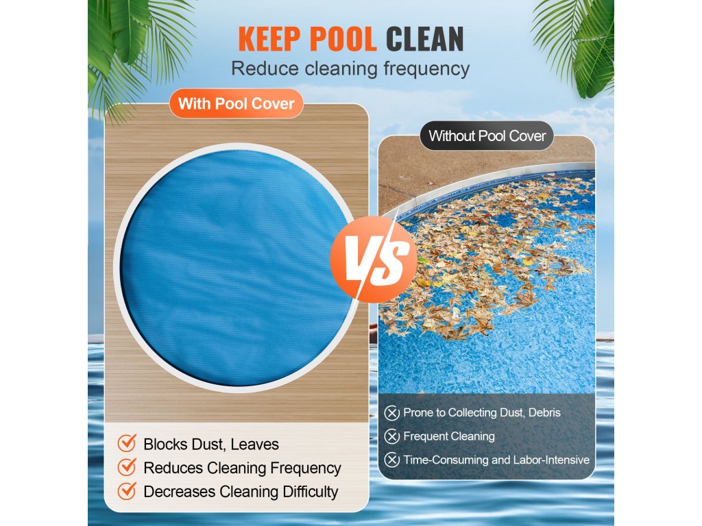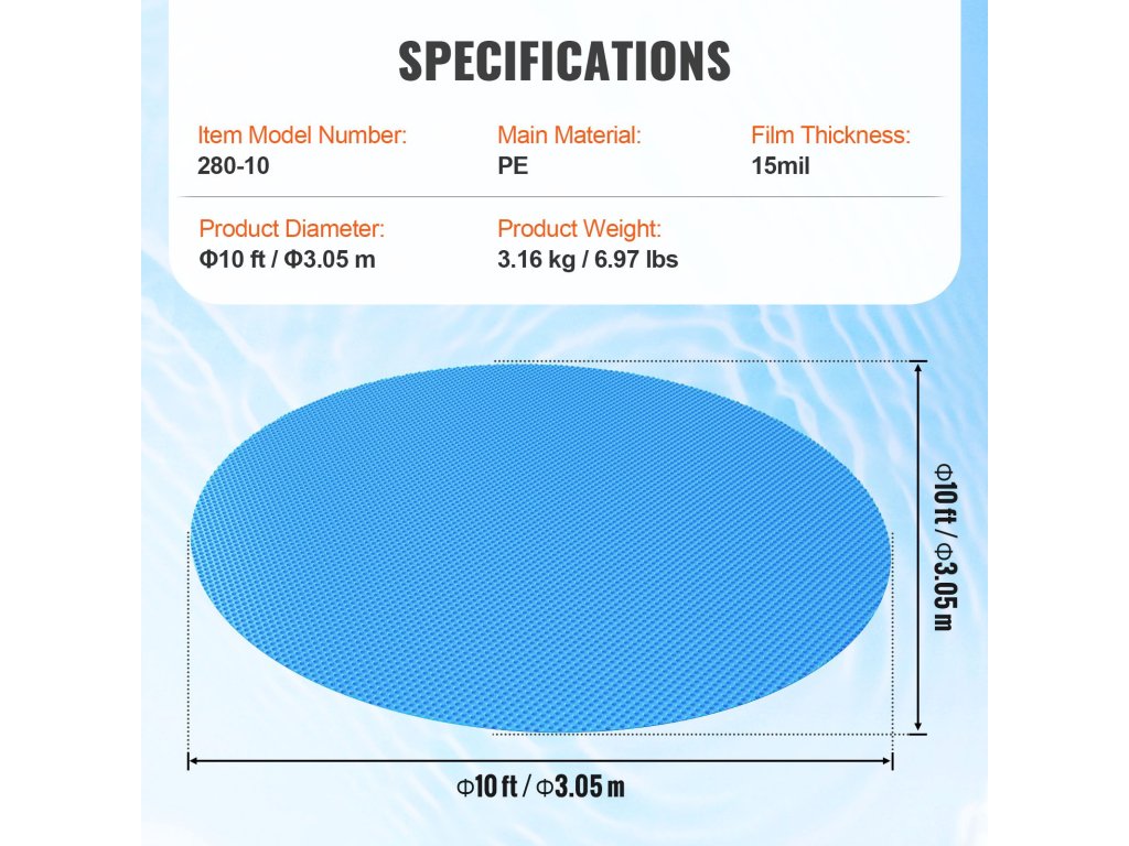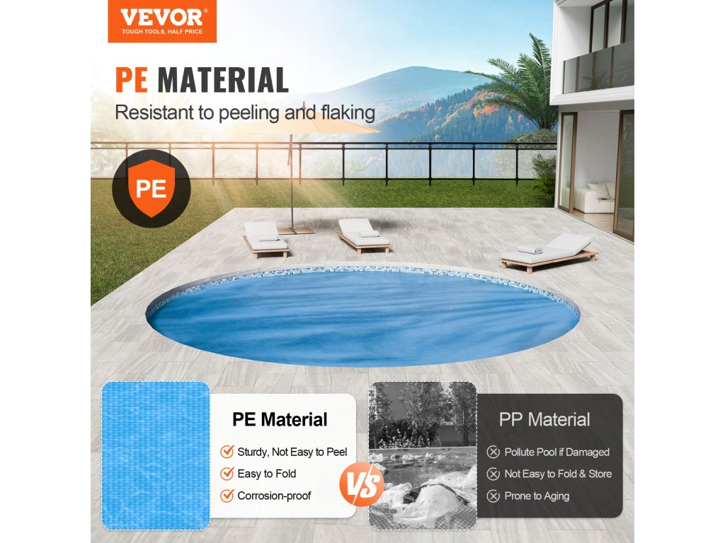 Napelemes medencefedés Φ10 láb, 15 mil, kék, süllyesztett és föld feletti