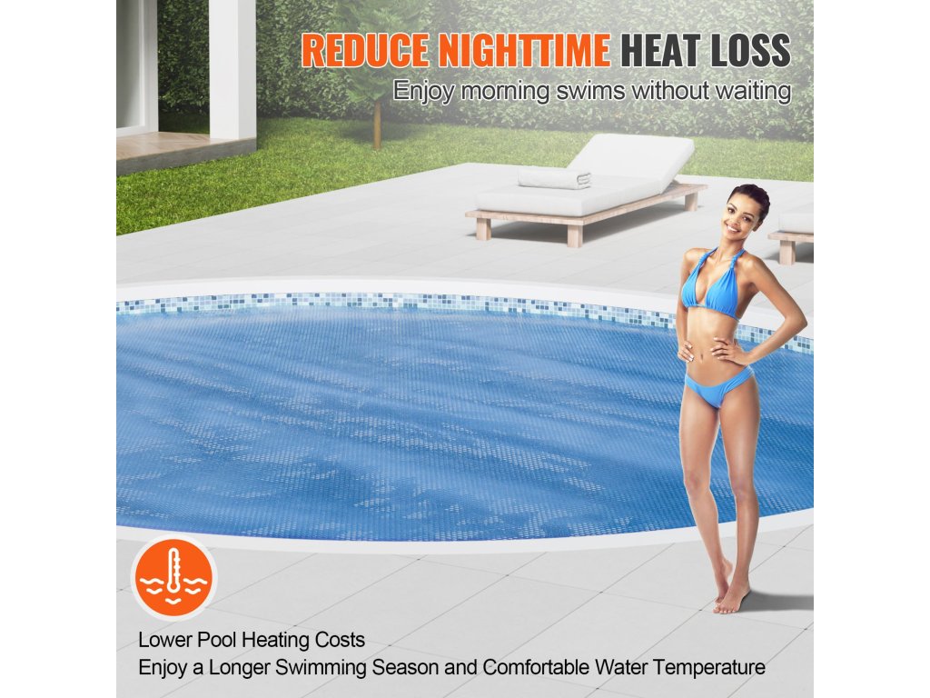 A napelemes medencefedél nappal elnyeli a hőt, így növeli a víz hőmérsékletét és csökkenti az éjszakai hőveszteséget. A zárt buborékok megtartják a hőenergiát és kiváló szigetelést biztosítanak. Élvezze a meleg medencét még a hideg éjszakákon is, így bármikor alkalmas a fürdőzésre.