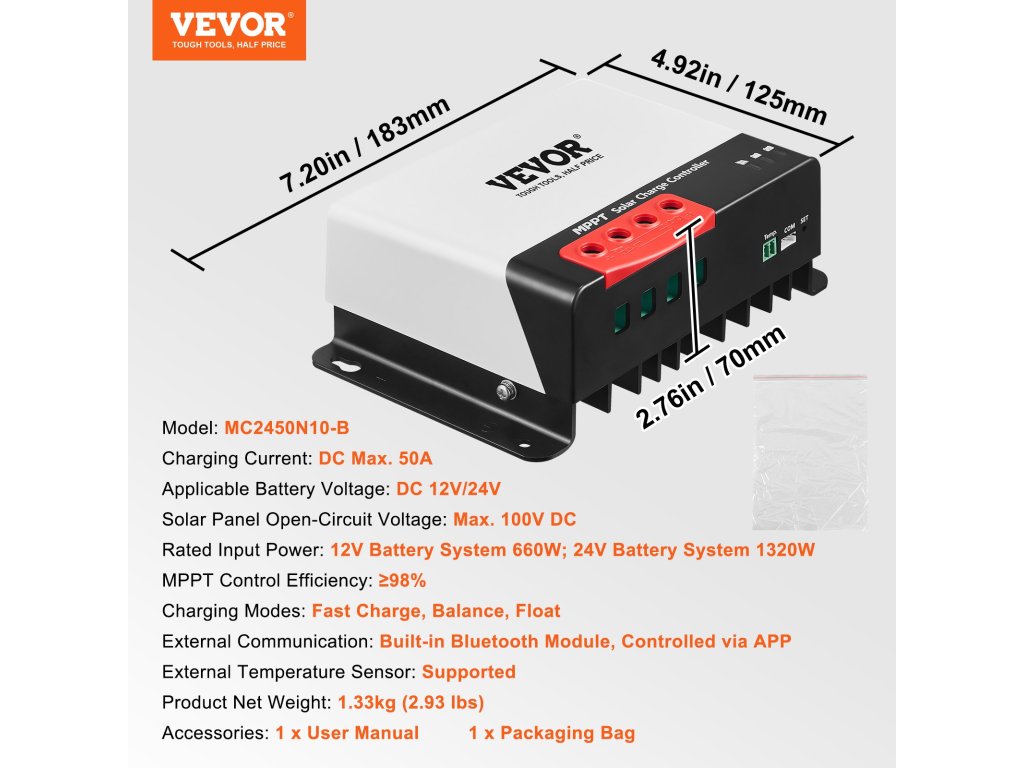 Alkalmas különböző környezetekhez és berendezésekhez, az otthoni napelemes rendszerektől a mobil fotovoltaikus rendszerekig, és támogatja a 12V 660W/24V 1320W maximális napelemteljesítményt; kompatibilis a különböző közös zárt mélyciklusú akkumulátorokkal, például AGM, zselés, elárasztott és lítium akkumulátorokkal.