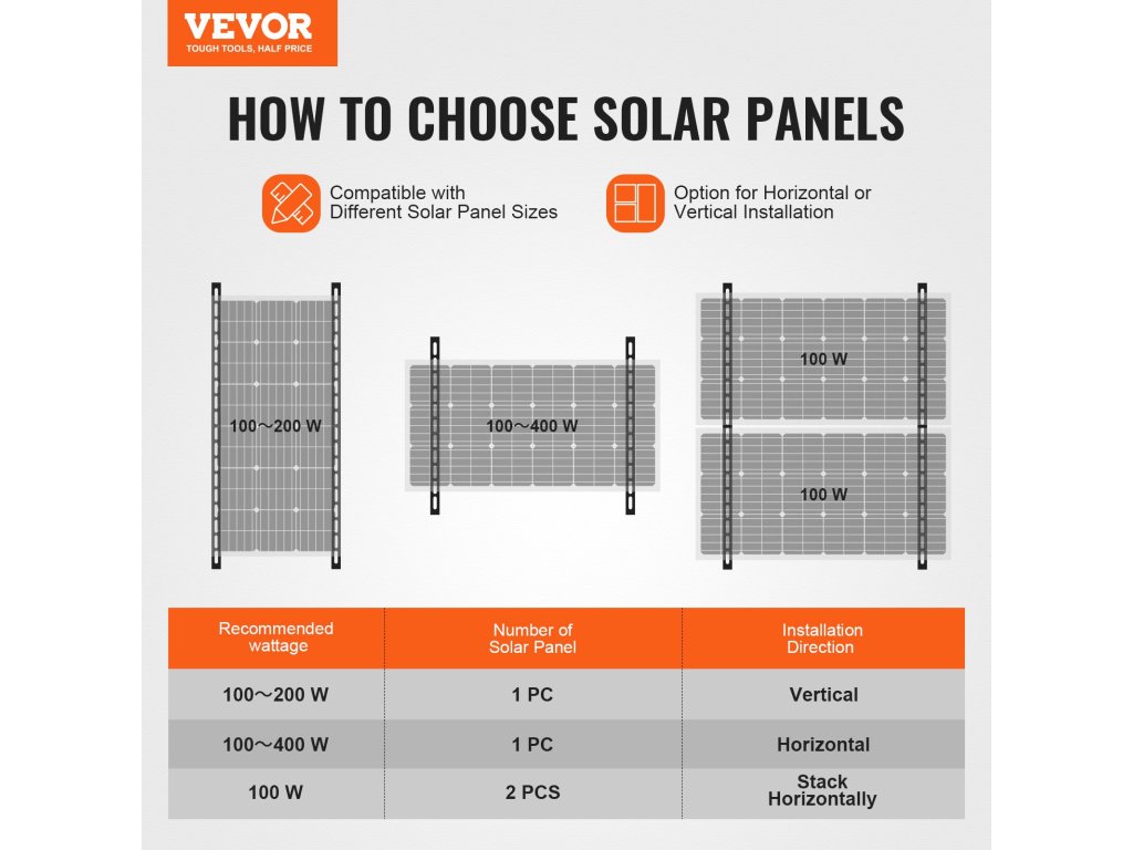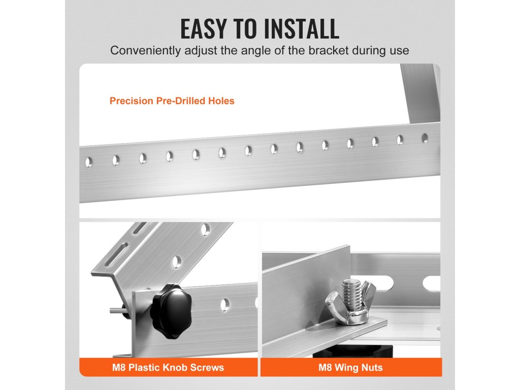 A VEVOR napelemtartók rugalmas, 0-90°-os szögbeállítással készültek, így könnyen beállíthatja a szöget a maximális napfény befogása és az energiahatékonyság jelentős növelése érdekében.