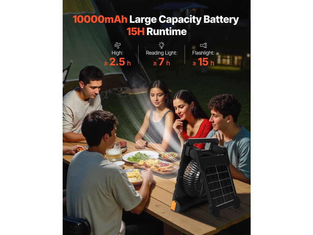 Akár kempingezel, horgászol, piknikezel vagy grillezel, ez a többsebességes napelemes ventilátor gyorsan lehűti a levegőt, és lehetővé teszi, hogy teljes mértékben élvezhesd a szabadtéri tevékenységeket.