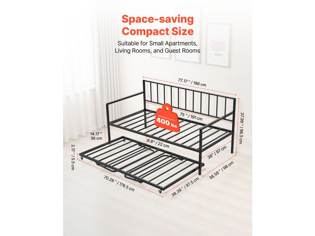| Nappali ágy | 77.17 x 38,58 x 37,99 hüvelyk / 196 x 98 x 96,5 cm / 17 x 38,58 x 37,99 hüvelyk / 196 x 98 x 96,5 cm |