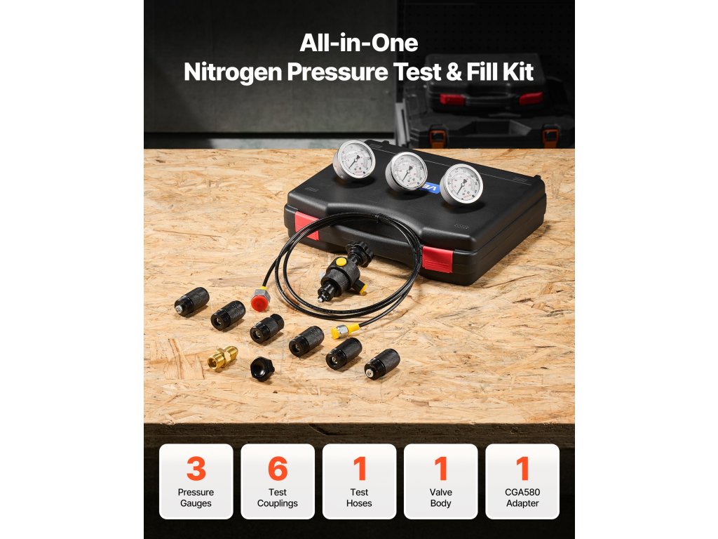 Nitrogén töltőkészlet, 3 manométer 100/250/400 bar, 6 adapter