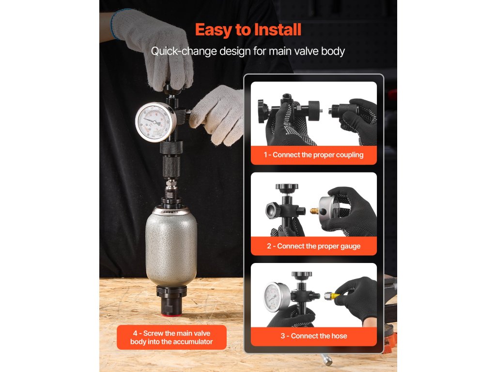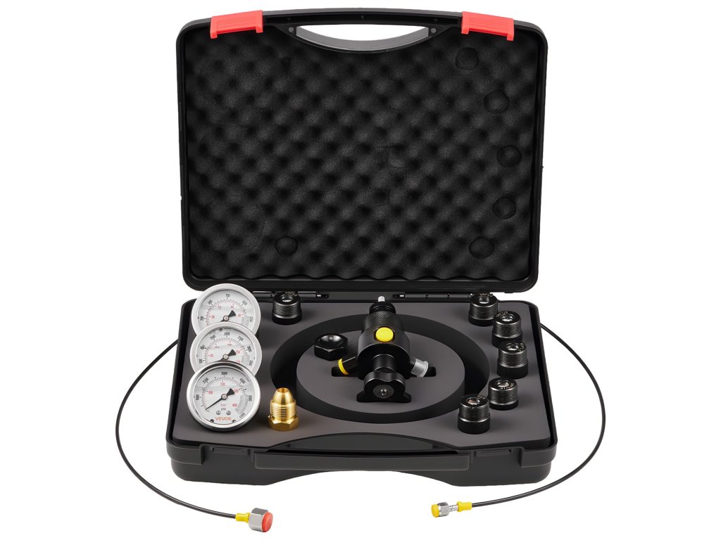 Ez a hidraulikus nyomásvizsgálati készlet nitrogén töltőszelepet és három nyomásmérőt tartalmaz. Támogatja a kétpontos vizsgálatot a hidraulikus rendszer hibáinak gyors és pontos felderítése érdekében, miközben biztosítja a hidraulikus akkumulátorok időben történő karbantartását.