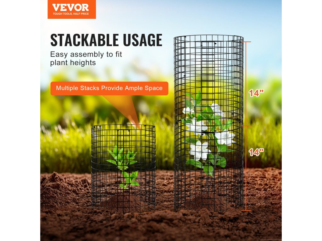 Ez az állatoktól származó növényvédő egymásra helyezhető és állítható, így magasságát az Ön igényeihez igazíthatja. Ideális a különböző növekedési stádiumban lévő növények támogatására, és bőséges helyet biztosít a fejlődésükhöz.