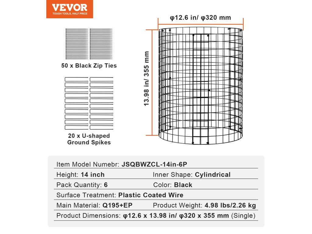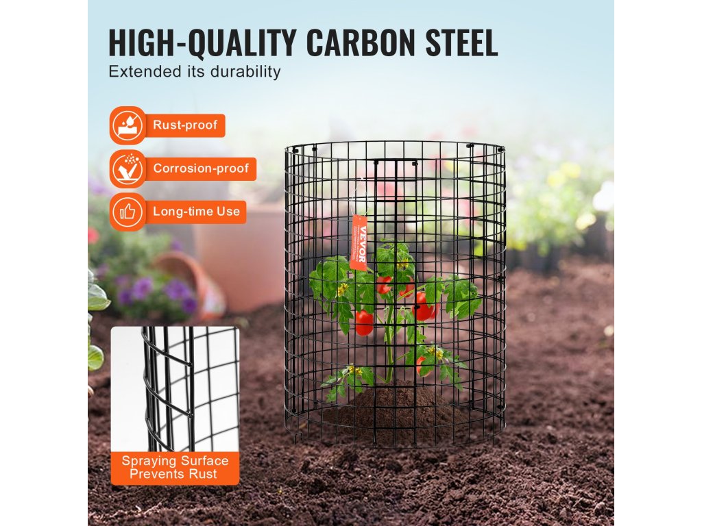 Ez a növényvédő kiváló minőségű, porszórt szénacélból készült, korrózióálló és tartósan megépített. Stabil felépítése biztosítja a megbízhatóságot, és távol tartja a kis állatokat a növényeitől.