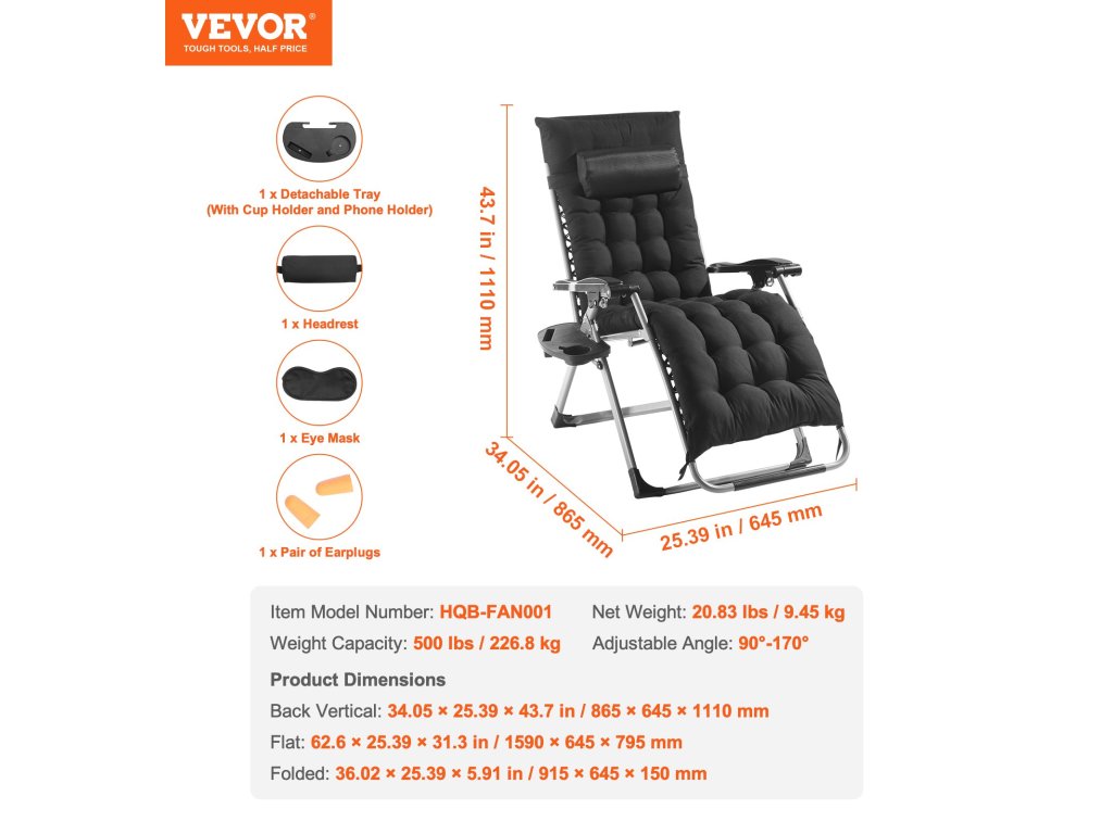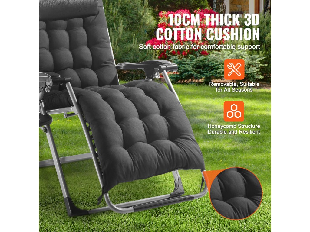 Ez a zéró gravitációs fekvőhely 26" méretű, és meghosszabbított karfákkal rendelkezik a stabil támasztás érdekében, valamint nagyméretű, csúszásmentes lábpárnákkal, amelyek puhák és nem irritálnak. Teljes kikapcsolódást biztosít a testnek és a léleknek egyaránt.