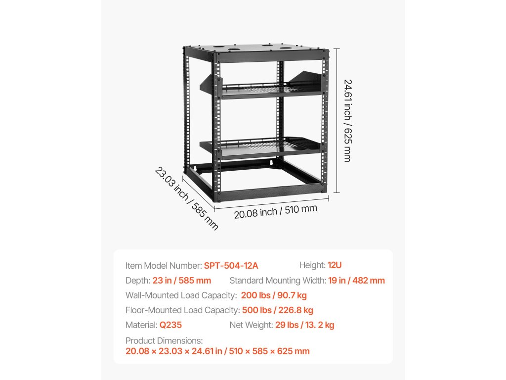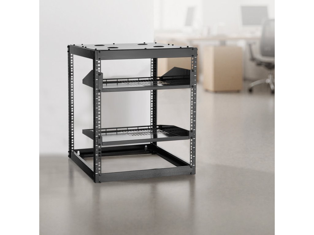 Nyitott rack 12U, 585 mm mélység, 4 oszlopos, padlóra/falra szerelhető