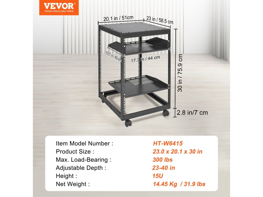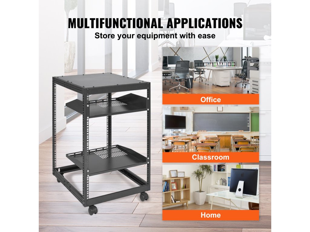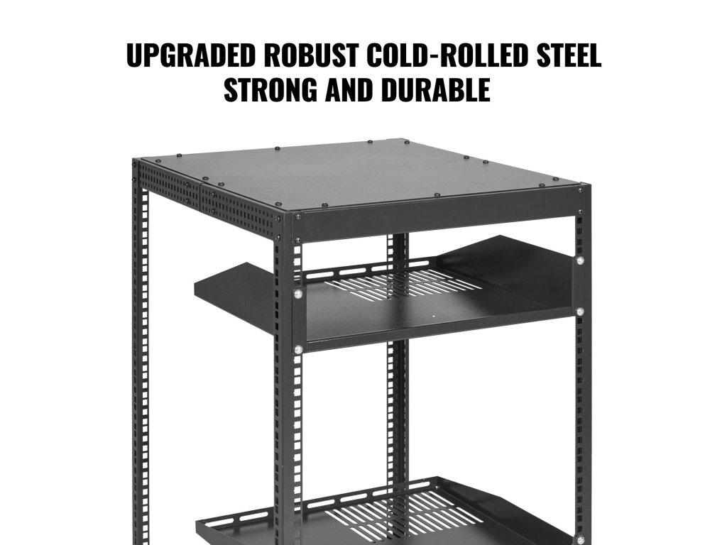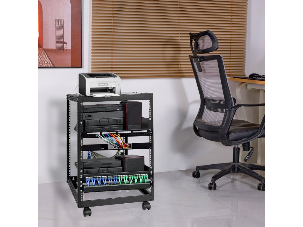 A VEVOR 15U nyitott keretes állvány professzionális hálózati berendezések tárolási szolgáltatásait nyújtja Önnek. Falra szerelhető vagy szabadon álló, ideális választás korlátozott helyigény esetén, és maximalizálja a rendelkezésre álló helyet.