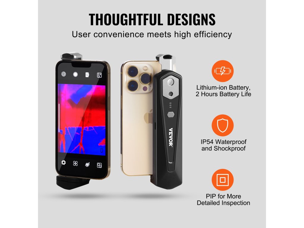 A VEVOR hőkamera Android és IOS operációs rendszerekhez, lenyűgöző 256 x 192 infravörös felbontással, kristálytiszta képeket biztosít a problémák pontos feltárásához. A vezeték nélküli adatátvitellel, a 25 Hz-es frissítési frekvenciával és a -4-1022℉ hőmérséklet-tartományban ideális választás a lakásfelügyelethez, a HVAC, a vízvezeték- és vízvezeték-szereléshez és még sok más területhez.