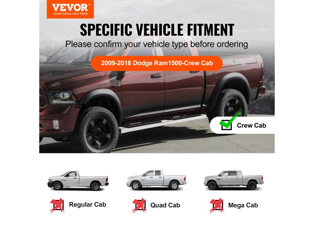 | Kompatibilis a következőkkel | 2009-2018 Dodge Ram 1500-Crew Cab |