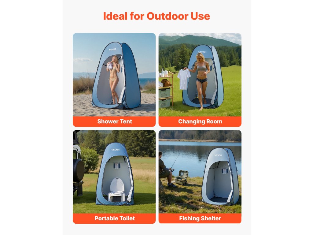 Zuhanyzó sátrunk könnyű és hordozható, alkalmas kempingezéshez, tengerparti kirándulásokhoz, fotózáshoz vagy horgászathoz. Privát helyet biztosít az öltözködéshez, zuhanyozáshoz vagy a szabadban való pihenéshez.