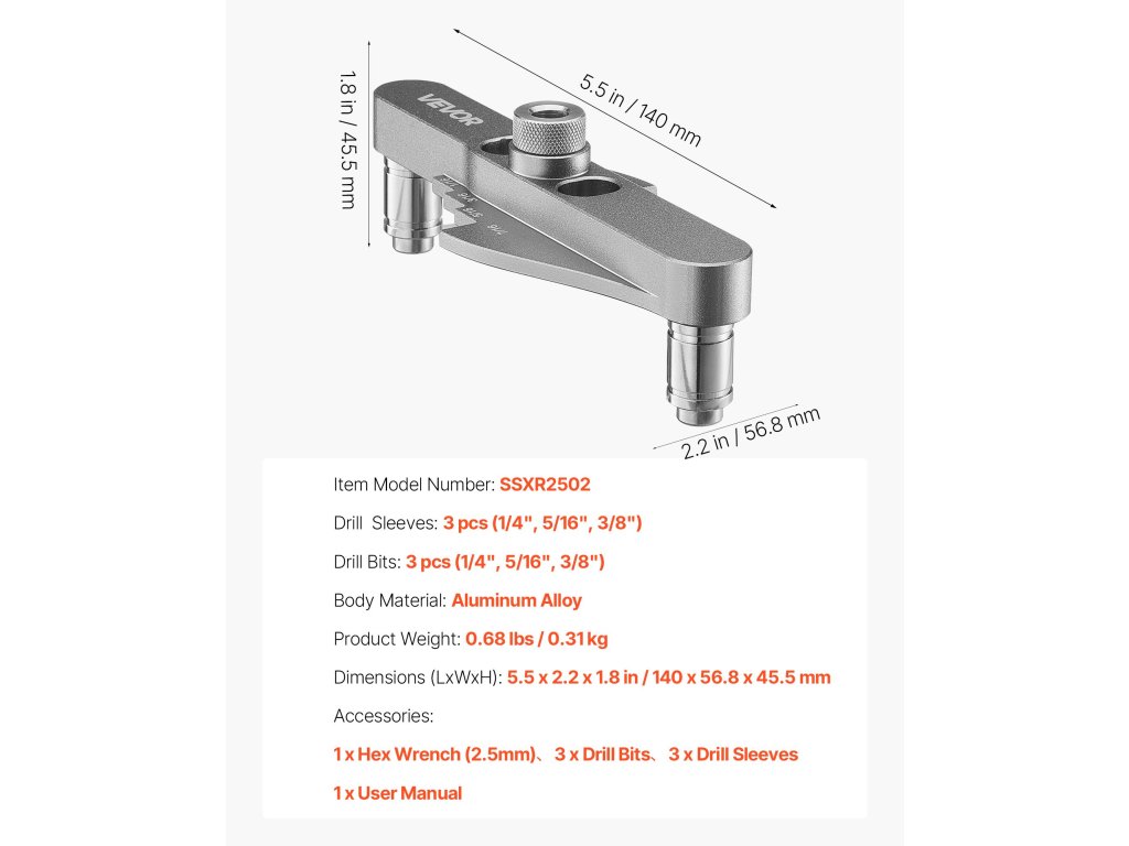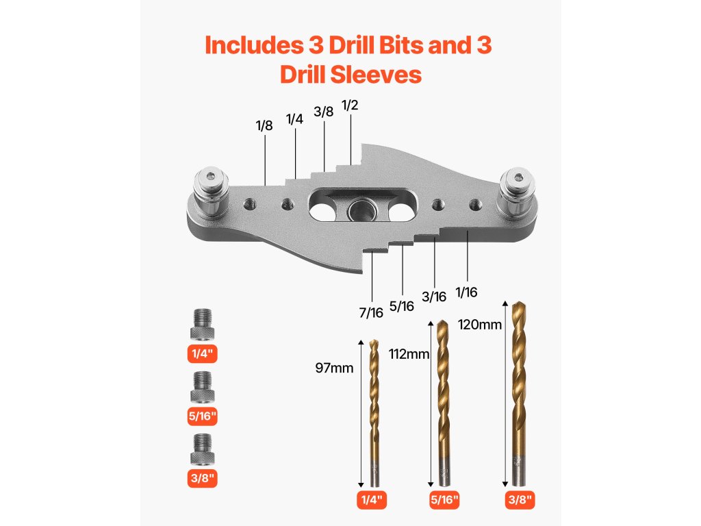 Önközpontosító dübelfúró sablon, 6,4/7,9/9,5 mm-es fúrószárakkal