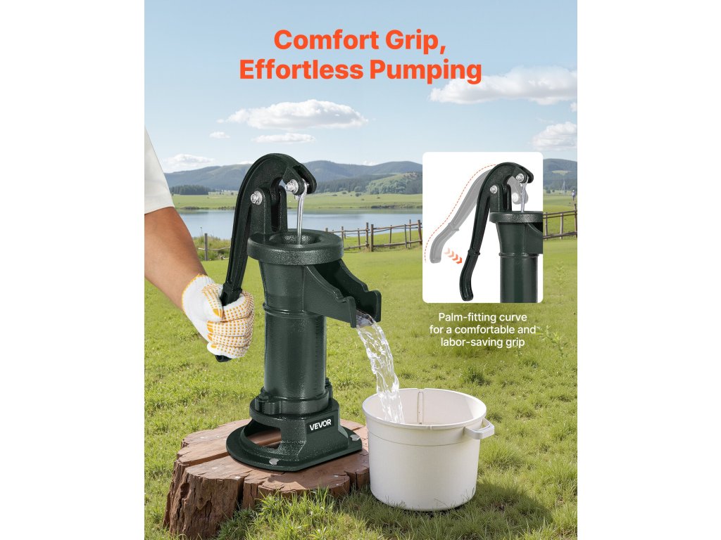 Legyen felkészülve arra, ha elmegy az áram, vagy ha nincs folyóvíz. A kézi korsós kútszivattyúnk megbízható tartalék vízforrás - ideális vészhelyzetekben vagy folyóvíz nélküli területeken. Nincs szükség elektromos áramra. Könnyedén és hatékonyan tud friss vizet szivattyúzni közvetlenül a földből.