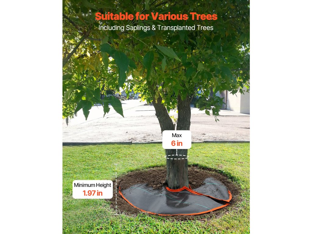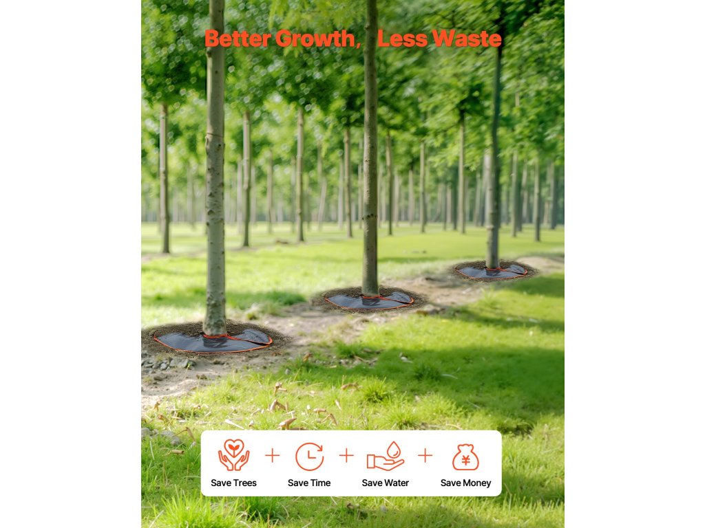 A faöntöző zsák teteje gyomirtó anyagból készült, ami segít korlátozni a gyomok növekedését tavasszal és nyáron, és megakadályozza, hogy más növények ellopják a vizet. Télen segít megvédeni a fák gyökereit a fagyos hőmérséklettől.