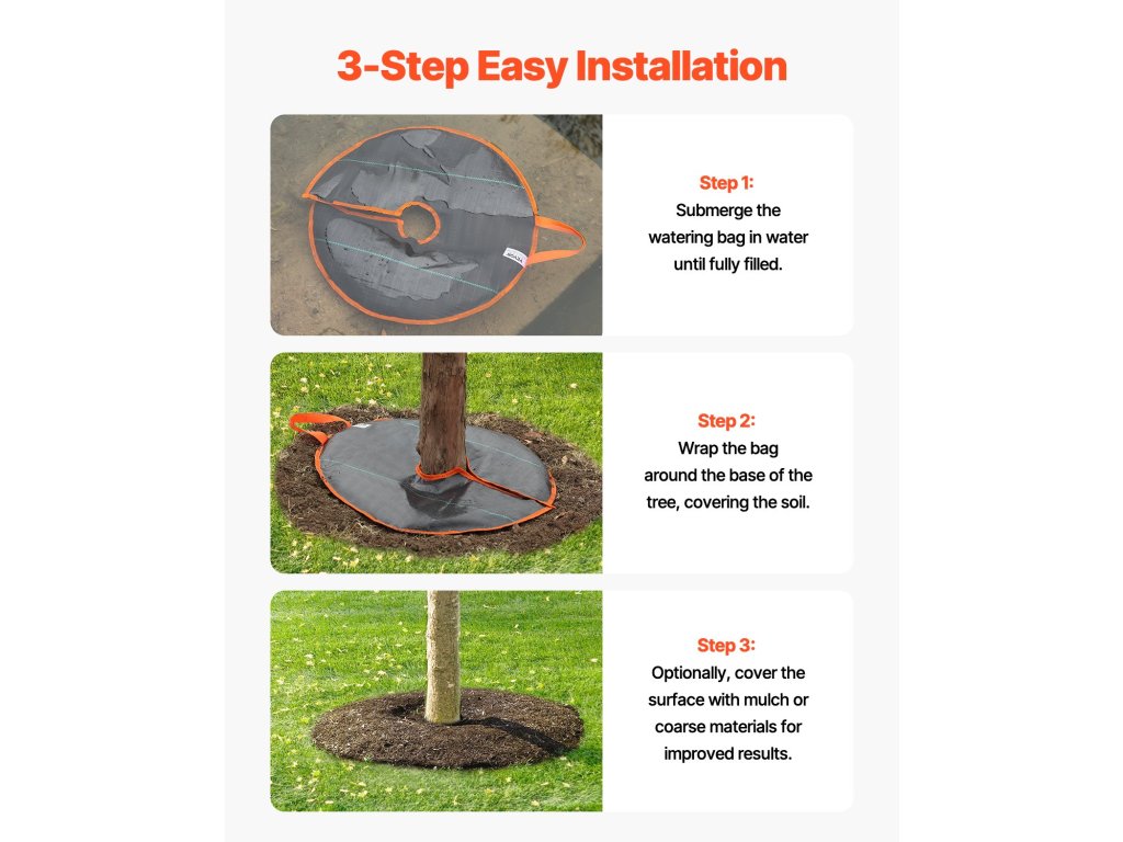 Legyen szó otthoni kertekről, gyümölcsösökről vagy a városi utcák mentén lévő közterületekről, ez az öntözőzsák ideális a fák hatékony öntözéséhez a legkülönbözőbb környezetekben.