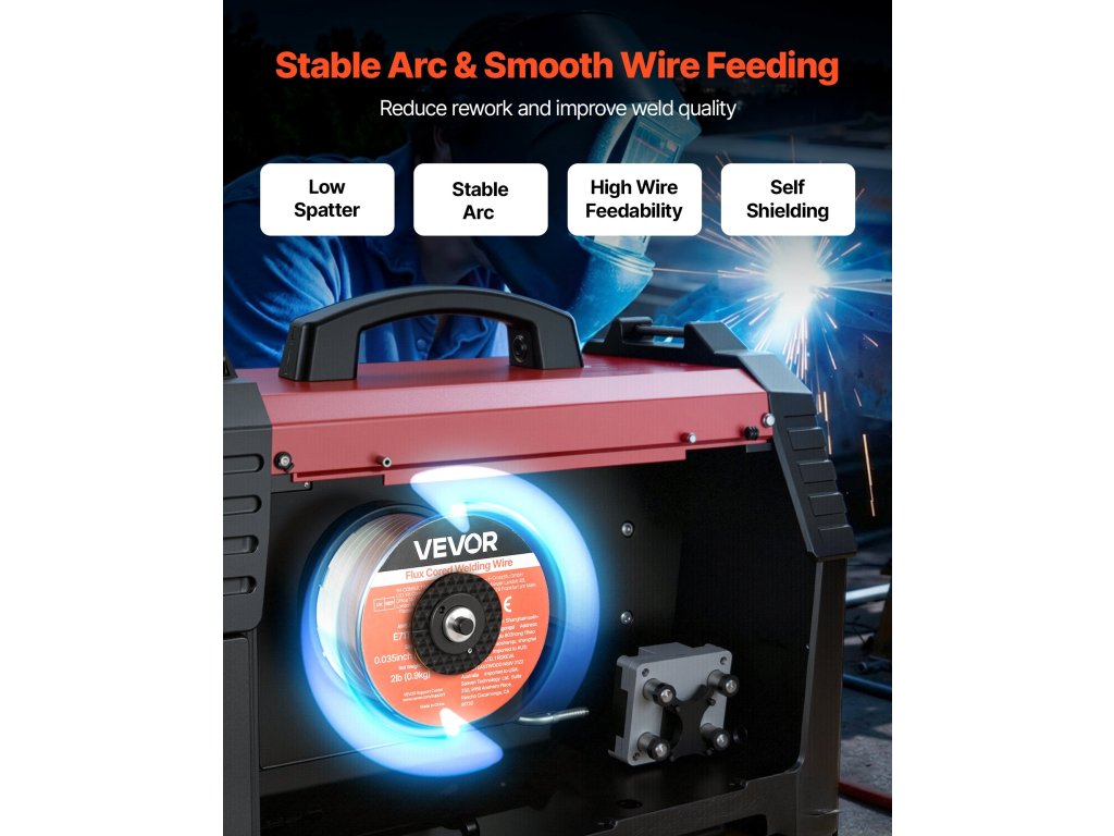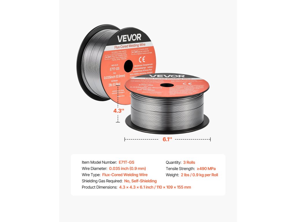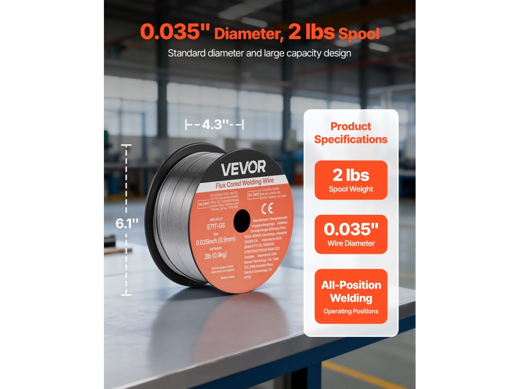 A VEVOR 0,035" 2 lbs E71T-GS MIG folyékony töltőanyagú hegesztőhuzal feszes és egyenletes hegesztési varratokat biztosít sima huzaltovábbítással, alacsony fröccsenéssel és önvédelmezéssel. Támogatja a gázmentes hegesztést minden helyzetben és a nagy szakítószilárdságot a megbízható teljesítmény érdekében az autóipari, gépészeti és barkácshegesztési projektekben.