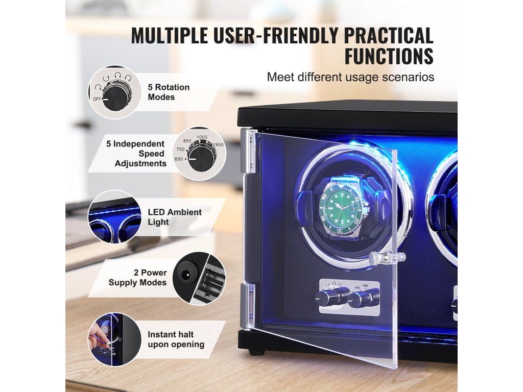 Órafelhúzónk bővíthető óraszíjpárnákkal van felszerelve a különböző szíjhosszúságok befogadására. A rugalmas ABS anyag biztosítja, hogy órája ne karcolódjon meg. Emellett a kinyitáskor azonnal leállítható funkció, a kék LED-fény és a 2 üzemmód az Ön kényelmét szolgálja.