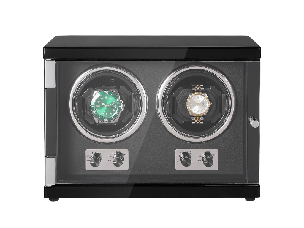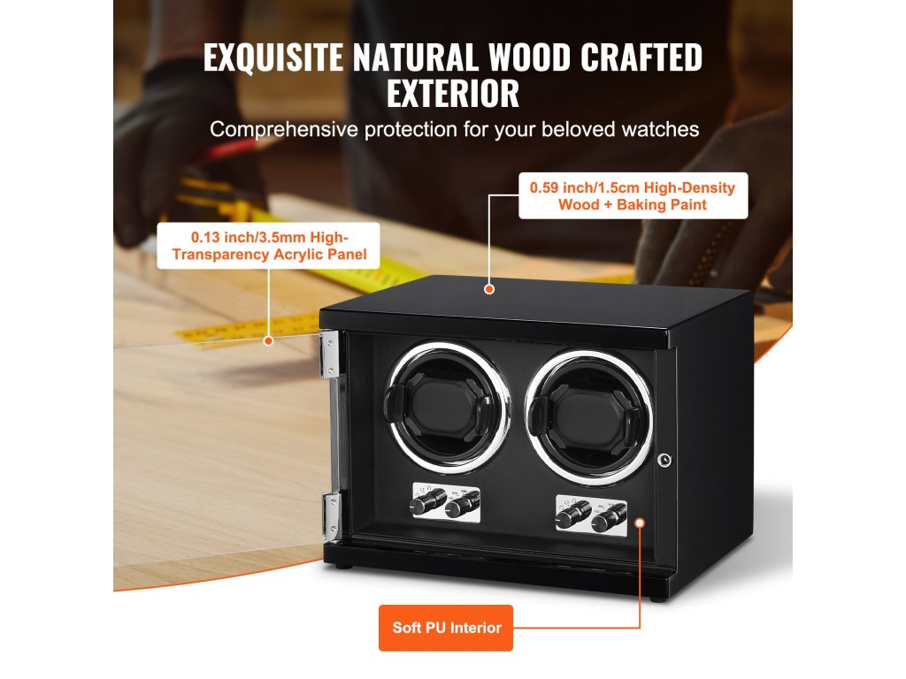 Forgatható óratartó tokunk tömörfa vastagított, lakkozott felületű tokkal és magasan áttetsző akril záróajtóval rendelkezik, ami kiemeli a textúrát és az esztétikát. A PU-belső megvédi az órát a karcolásoktól, és könnyen tisztítható is, így biztosítva, hogy a felhúzó tiszta maradjon.