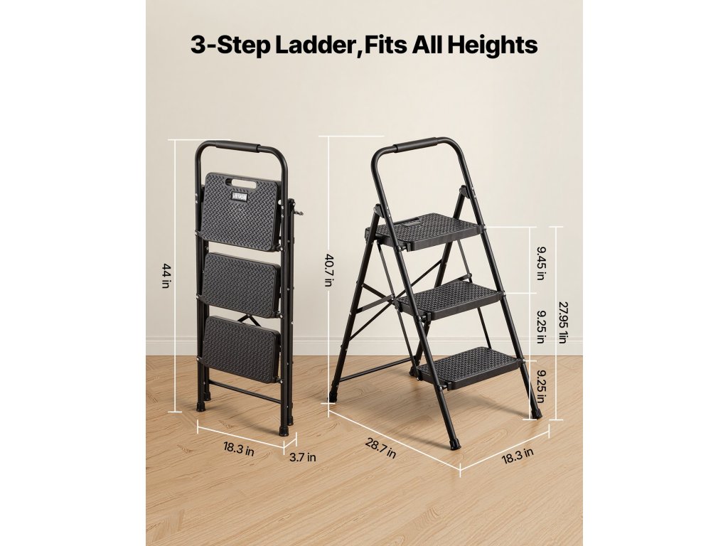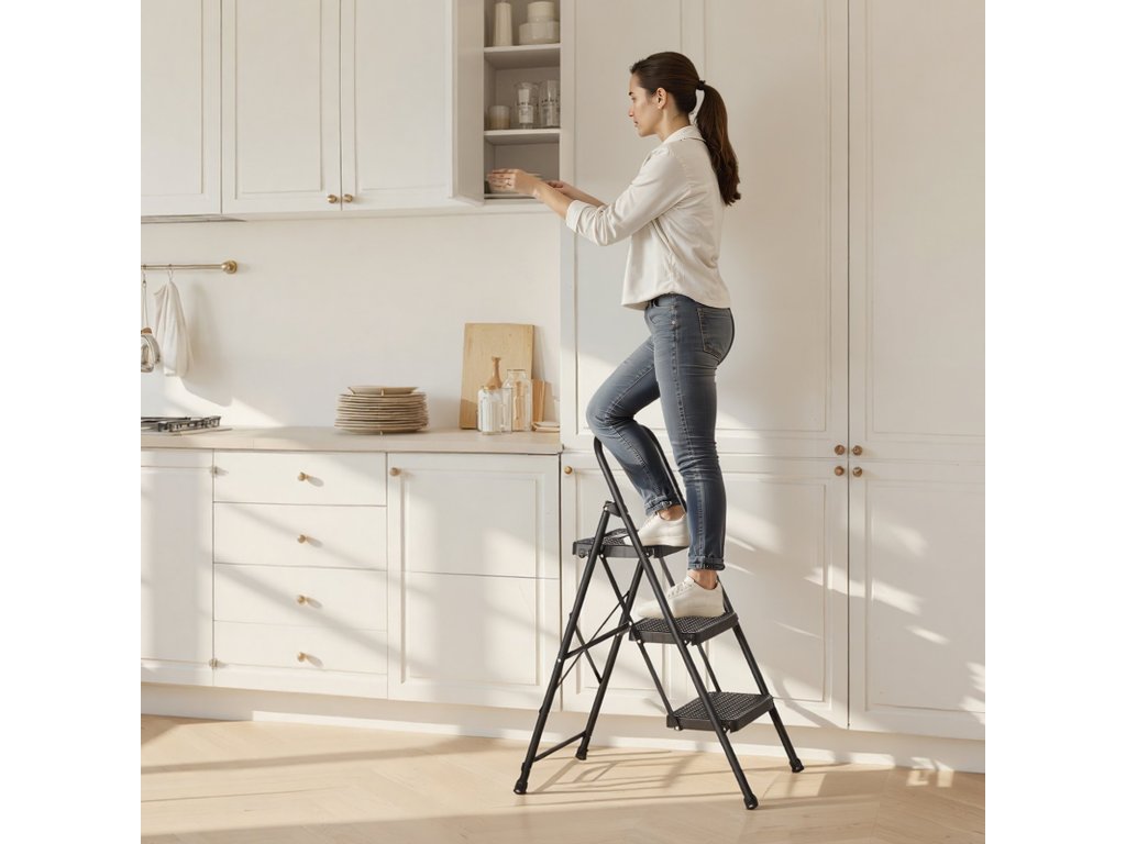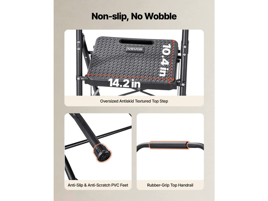Ez a konyhai létra túlméretezett csúszásmentes kapaszkodókkal és csúszásmentes lábakkal van felszerelve. Úgy tervezték, hogy stabil legyen, és karcsú, összecsukható kialakítással rendelkezik a könnyű tárolás érdekében. Gyorsabban és magabiztosabban dolgozhat takarítás, festés és szerelés közben.