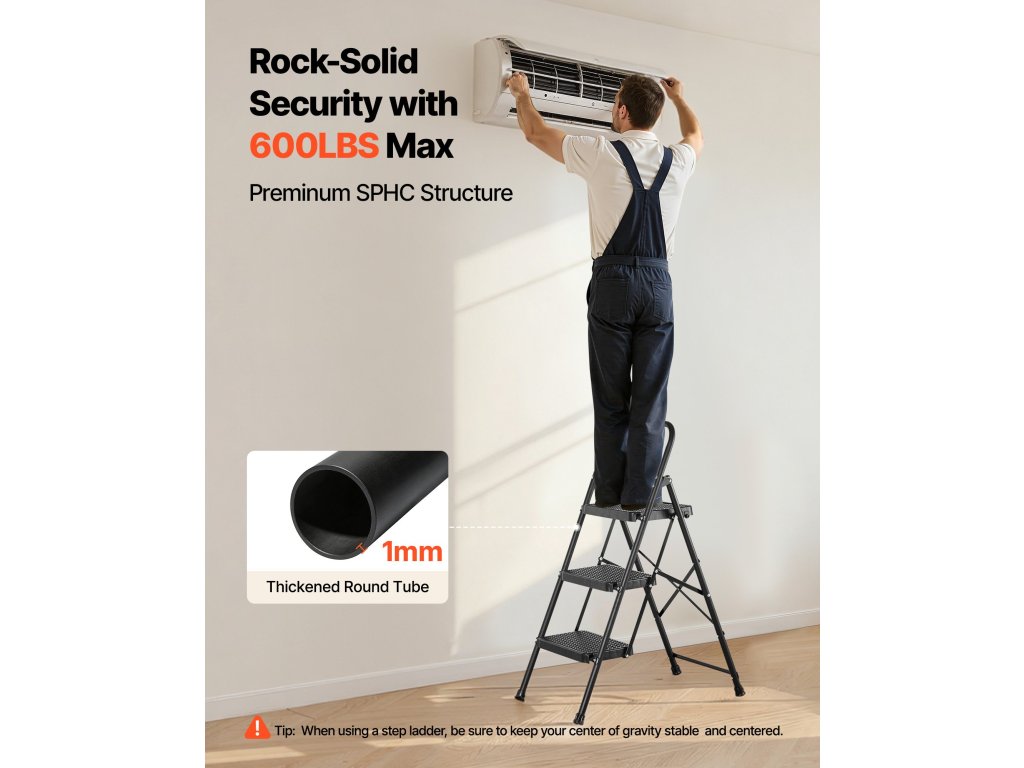 Ez a kompakt létra alkalmas otthoni javításokhoz, takarításhoz és rendszerezéshez, és stabil, csúszásmentes támaszt nyújt, így könnyen feljuthat magas helyekre.