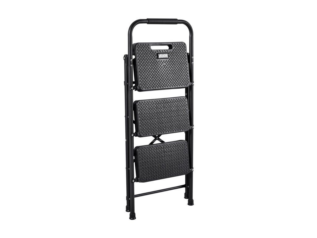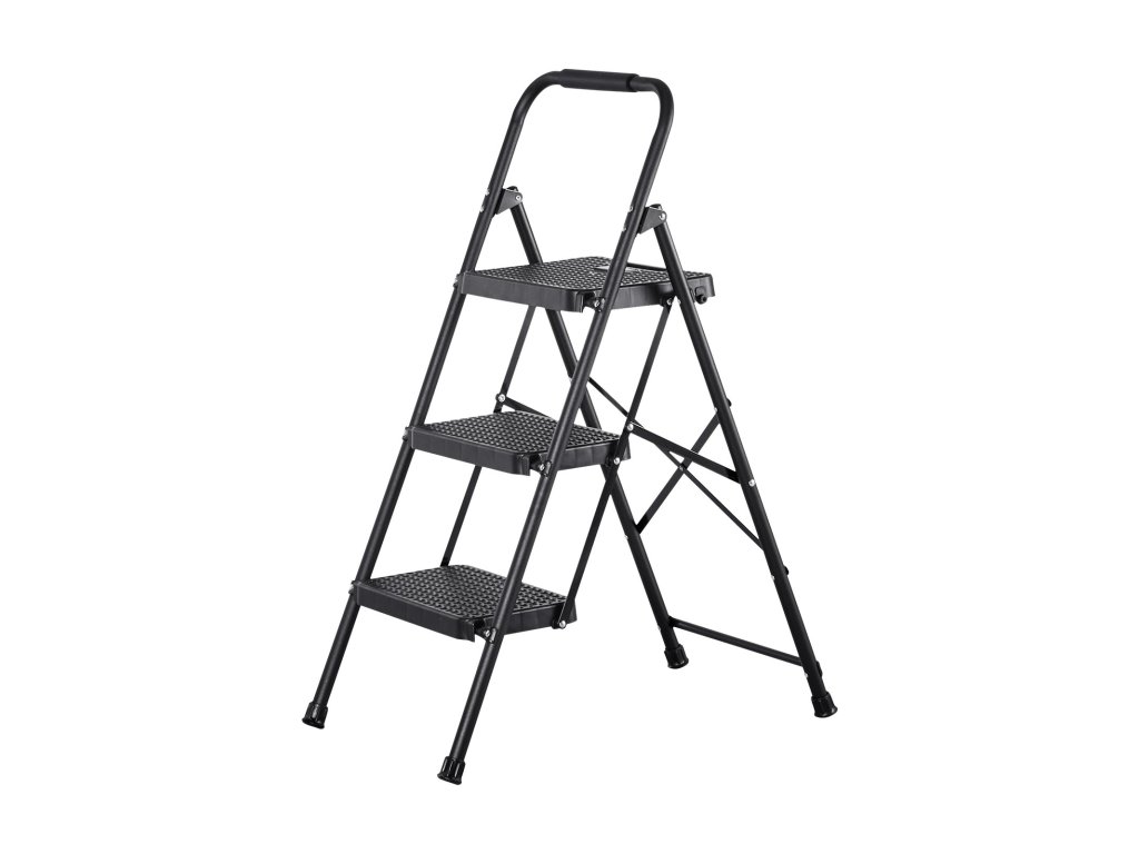 Összecsukható, 3 fokos acéllétra csúszásgátló lépcsőfokokkal, 272 kg