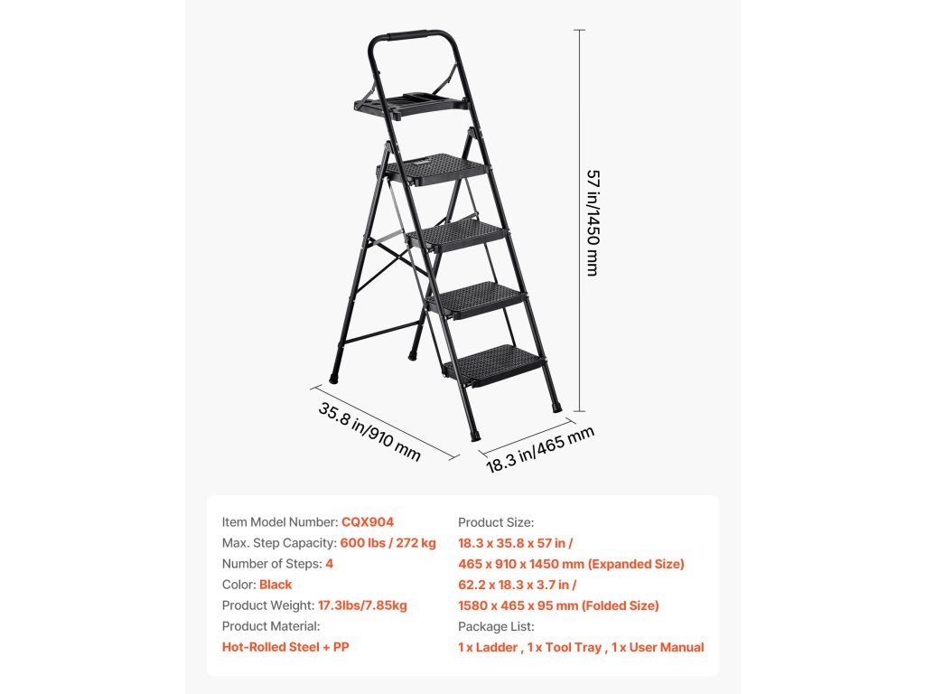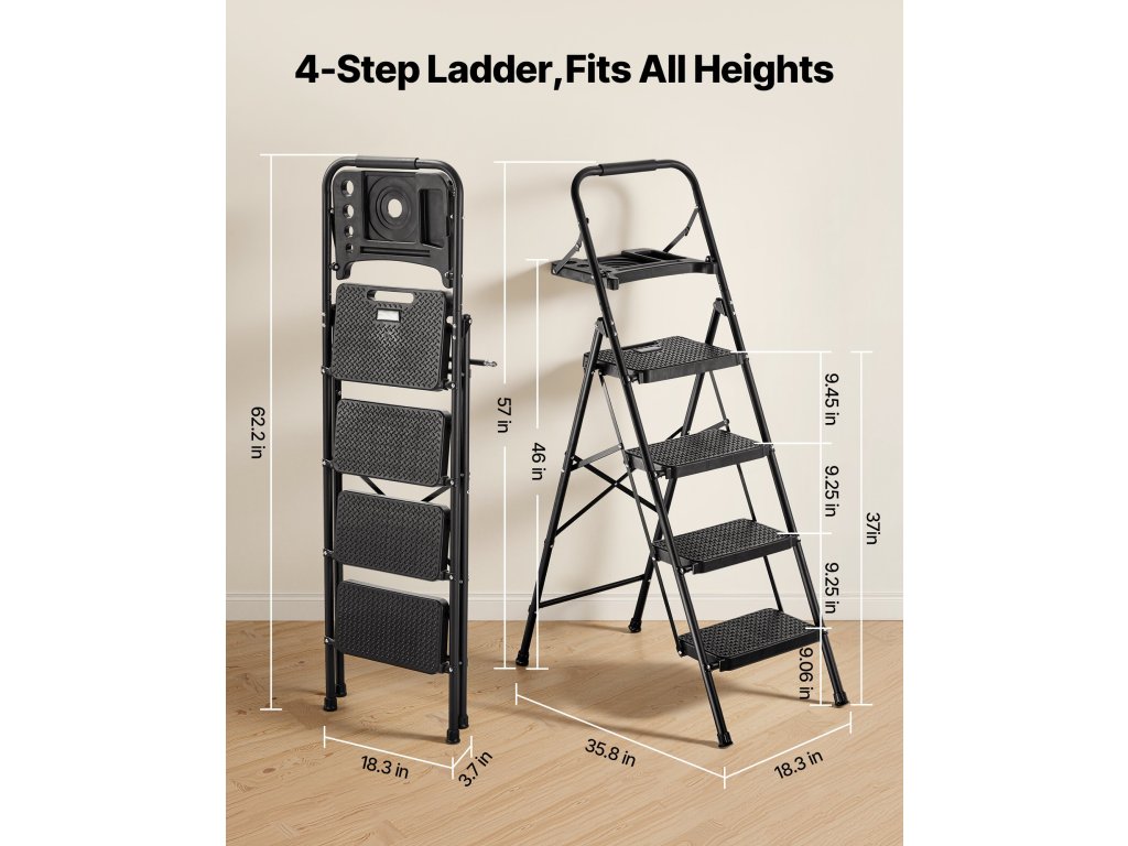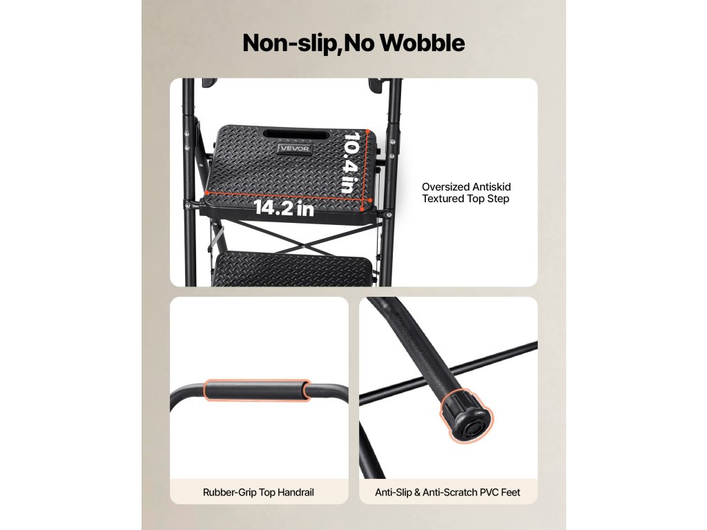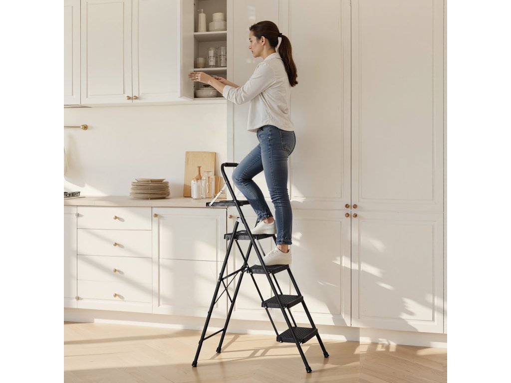 Ez a konyhai létra túlméretezett csúszásmentes kapaszkodókkal és csúszásmentes lábakkal van felszerelve. Úgy tervezték, hogy stabil legyen, és karcsú, összecsukható kialakítással rendelkezik a könnyű tárolás érdekében. Gyorsabban és magabiztosabban dolgozhat takarítás, festés és szerelés közben.