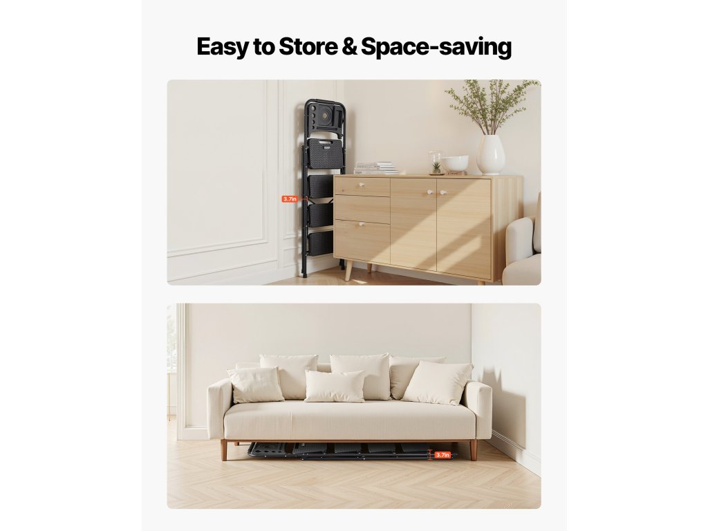 Ez a kompakt létra alkalmas otthoni javításokhoz, rendrakáshoz és rendszerezéshez, és stabil, csúszásmentes támaszt nyújt, így könnyen bejuthat magas helyekre.