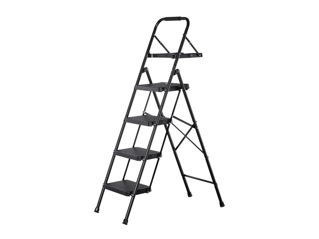 Összecsukható, 4 fokos létra, csúszásgátló lépcsőfokokkal, teherbírás 272 kg