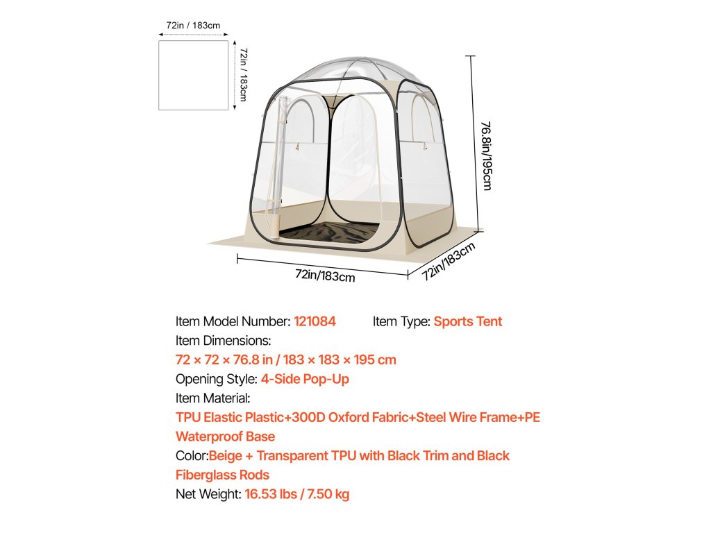Átlátszó pop-up sportsátor a szabadidő eltöltéséhez