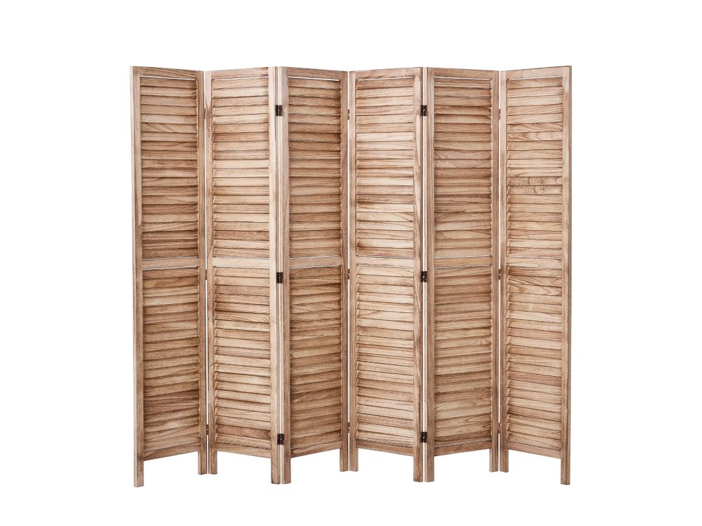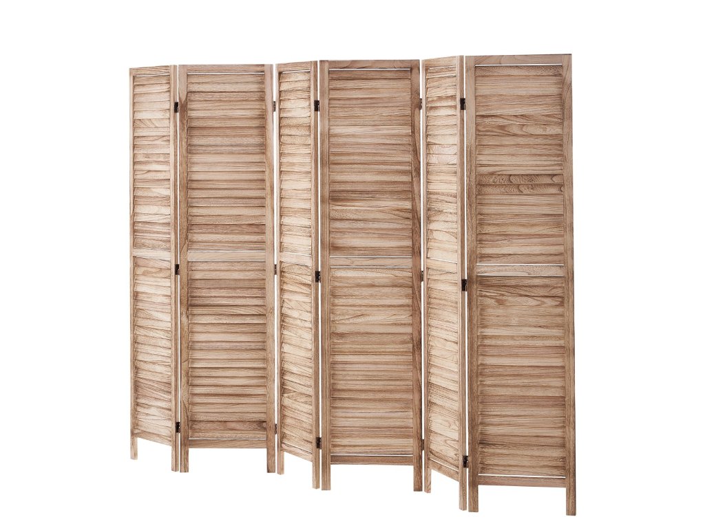 Összecsukható fa paraván, 6 paneles, lécekkel, 167 cm magas