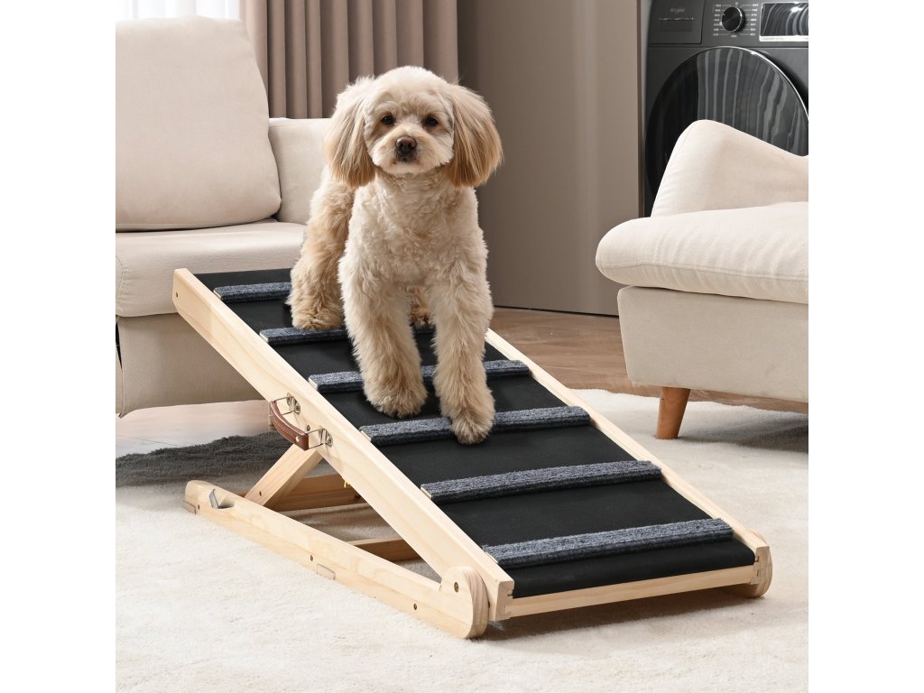 Összecsukható fa rámpa kutyáknak és macskáknak 105 cm, magasság 35–65 cm