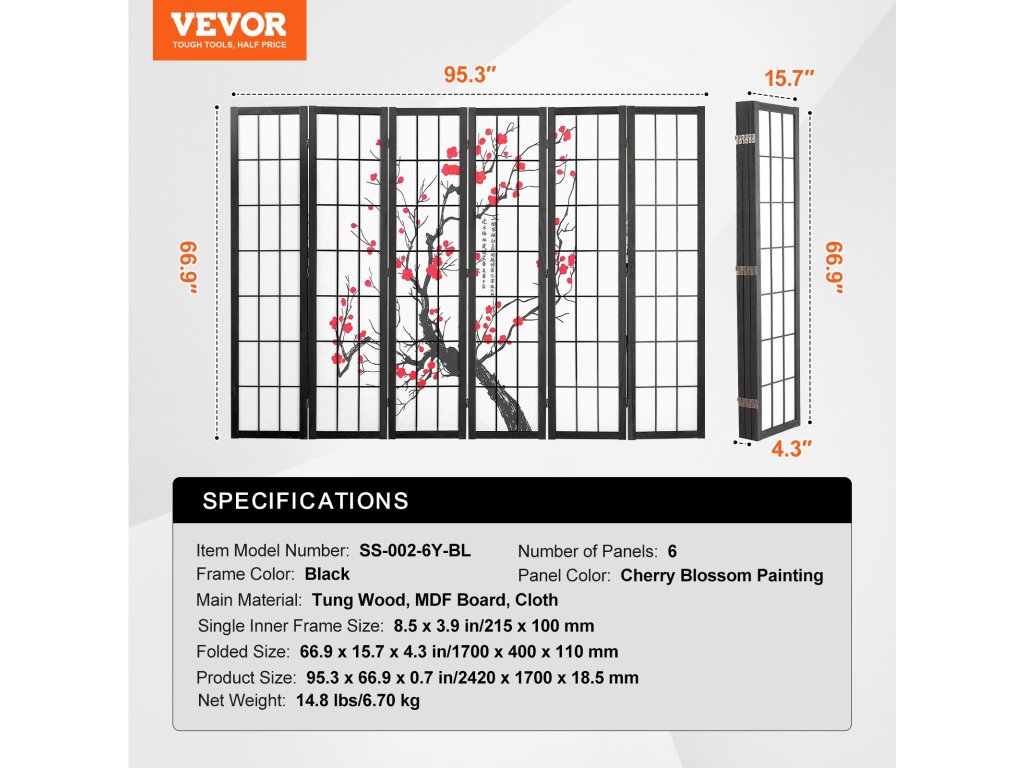 VEVOR stílusos 6 paneles japán szobaosztó