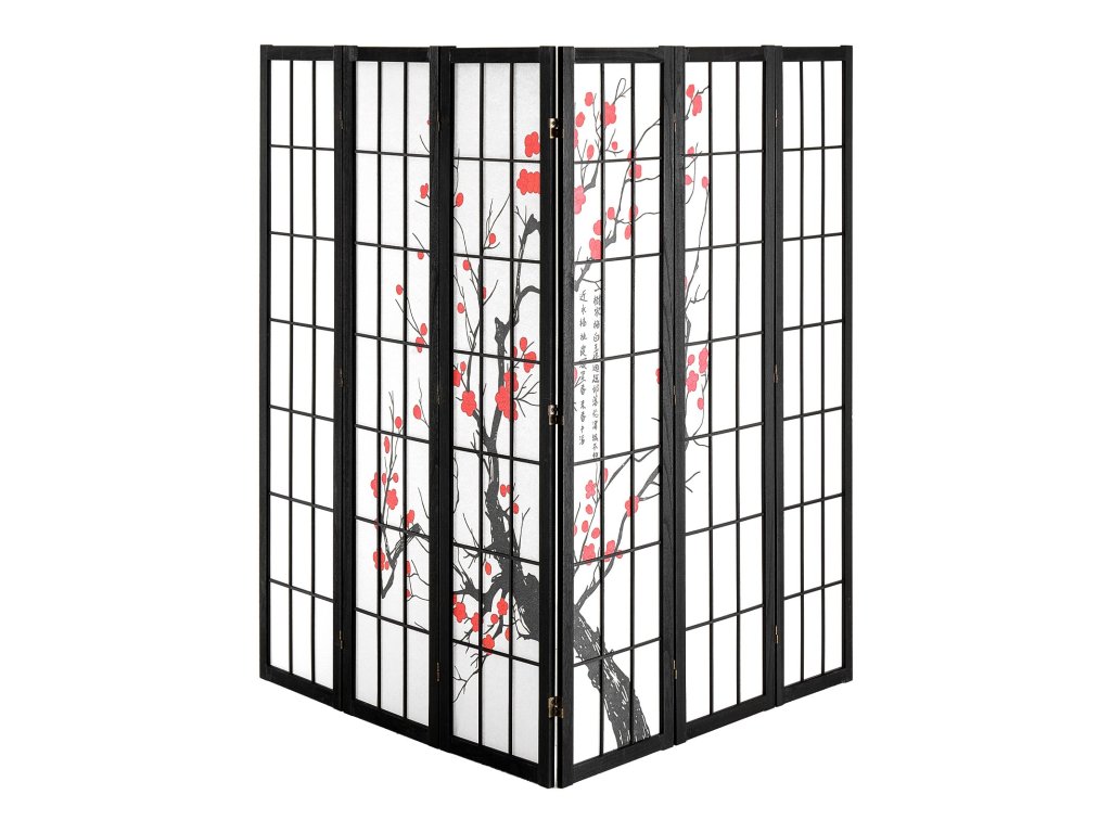 Összecsukható japán paraván, 6 paneles, fából készült, hordozható, beltéri használatra