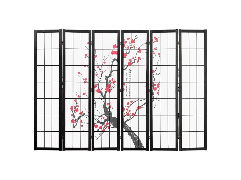 Ez a stílusos térelválasztó fa ráccsal és cseresznyevirágos dizájnnal rendelkezik. 360°-ban forgatható és tárolás céljából könnyen összecsukható. Tartós tömör fából és vízálló szövetből készült, így bármilyen térben magánéletet teremt, miközben elzárja a napfényt.