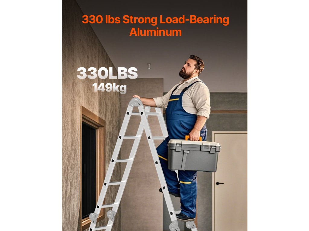 Ez a többfunkciós összecsukható létra minden magassági hozzáférési igényt kielégít. Megerősített alumíniumból készült, így ellenáll a hajlításnak és a vetemedésnek. A zsanér 35°, 107° és 180° szögben állítható. ideális otthoni, munkahelyi és kültéri feladatokhoz, stabilitást és sokoldalúságot biztosít minden helyzetben.