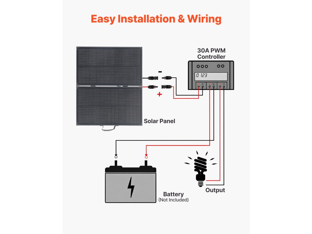 Monokristályos napelemünk stabil MC4 kimenettel, 30A PWM-vezérlővel és léptetővel rendelkezik, hogy könnyen csatlakoztatható legyen az akkumulátorokhoz, és stabil és egyenletes teljesítményt biztosítson.