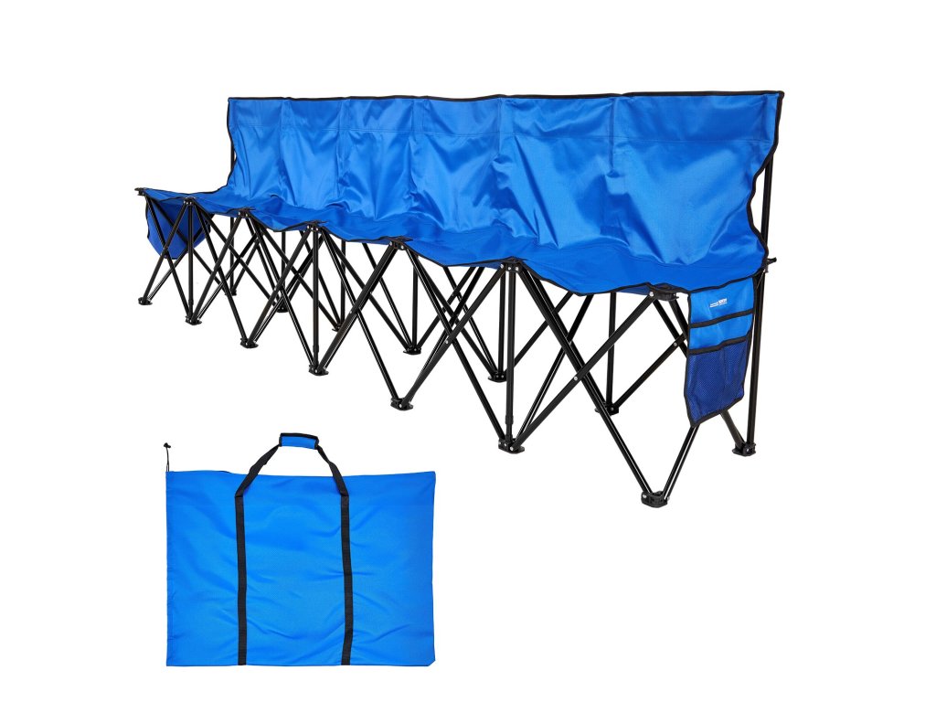 Összecsukható pad 6 fő részére háttámlával, oldalsó zsebekkel és táskával