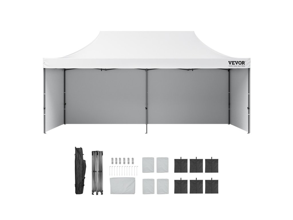 Összecsukható sátor 3,05 × 6,1 m falakkal és szállítótáskával, fehér