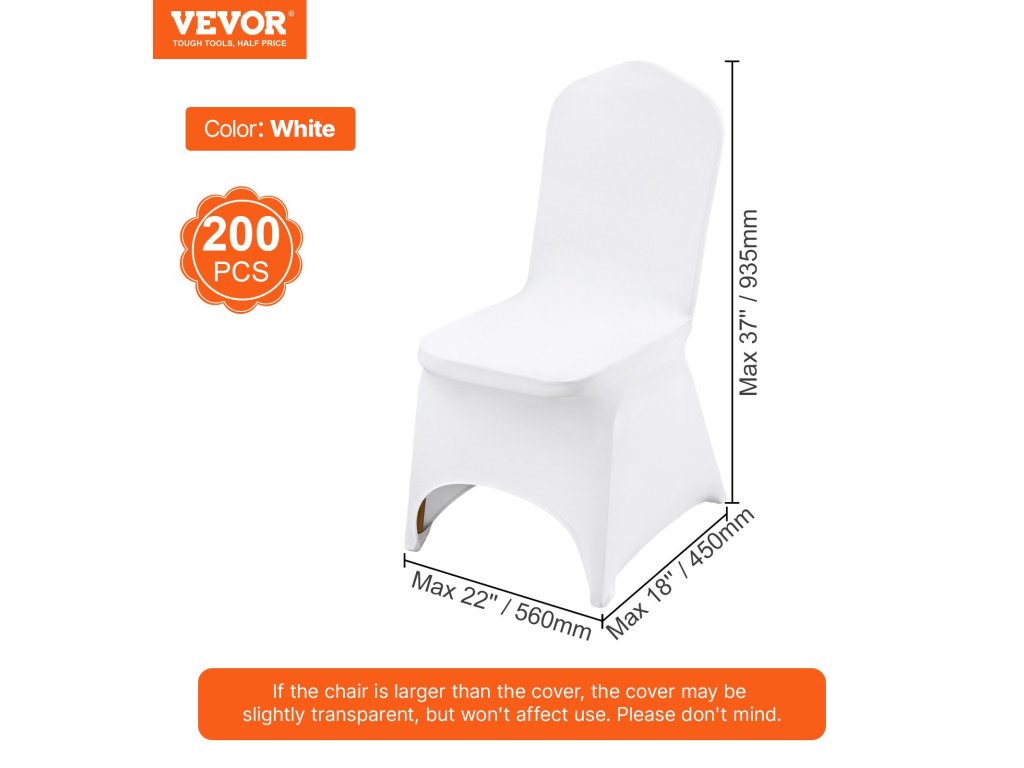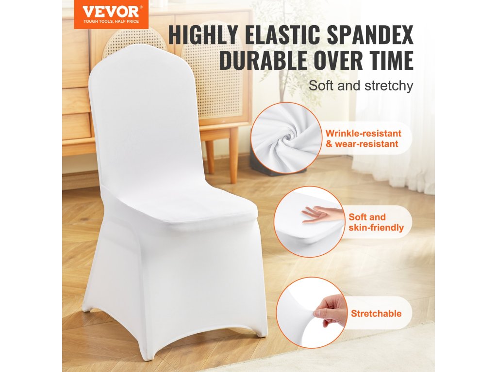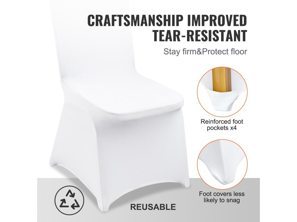 Összecsukható székhuzatok, spandex, levehető, mosható, 200 db, fehér
