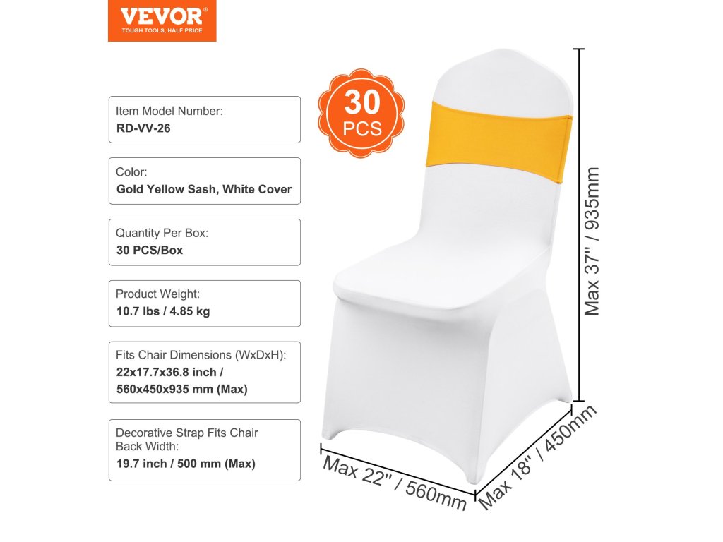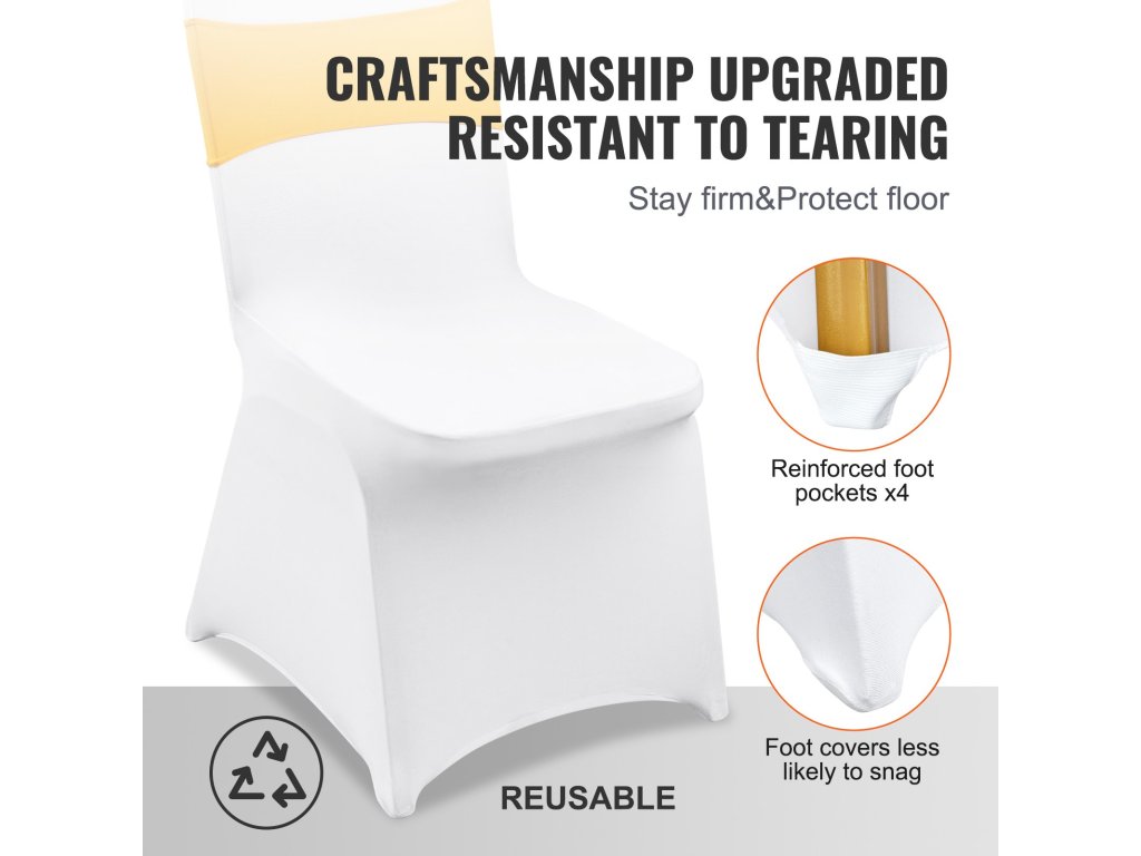 Összecsukható székhuzatok 30 db-os spandex, arany és fehér, mosható