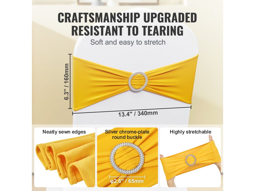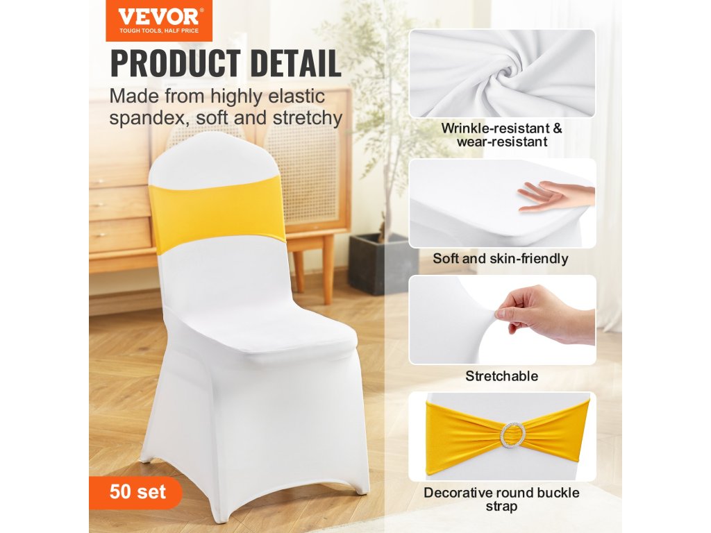Összecsukható székhuzatok 50 szett, rugalmas spandex, arany/fehér
