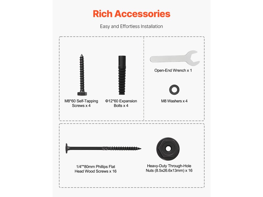 A lyukak létrehozásához elektromos fúrógépet használva ez az oszlophorgony csavarfuratokkal van ellátva a csavarok segítségével történő egyszerű telepítéshez, így a telepítés gyerekjáték lesz.