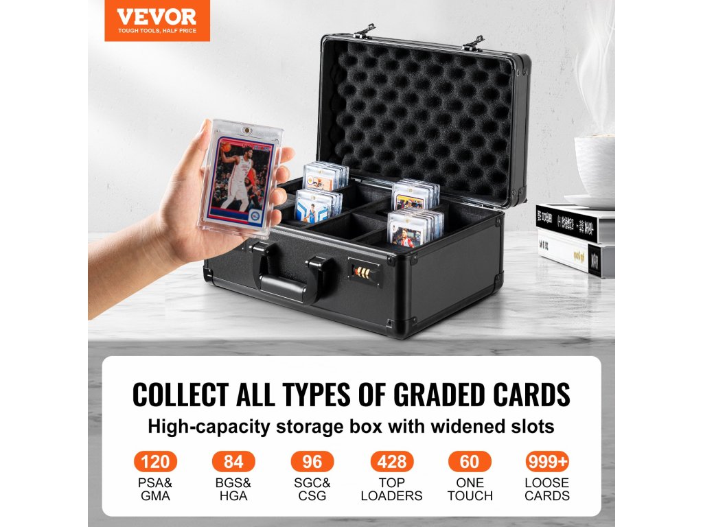 Bemutatjuk a 3,5 hüvelykes/90 mm-es, kibővített kártyafoglalattal és 20 rugalmas habbetéttel rendelkező, akár 120 PSA minősítésű kártyát befogadó, PSA, BGS, SGC és TOP LOADERS kártyákkal kompatibilis kártyatáskát. Kombinációs zárral és fogantyúval ellátott, védje meg kártyáit, és vigye magával bárhová bátran!