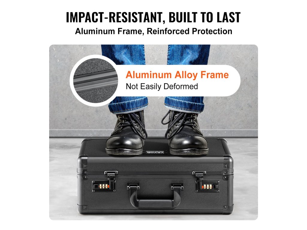 Rendezett kártyatokunk alumíniumötvözetből készült kerettel és megerősített fém sarkokkal készült, amelyek biztosítják a leejtés- és ütésállóságot, és meghosszabbítják az élettartamát. Az alján található gumilábak ütéscsillapítást és párnázást biztosítanak, fokozott védelmet nyújtva értékes gyűjteményének.